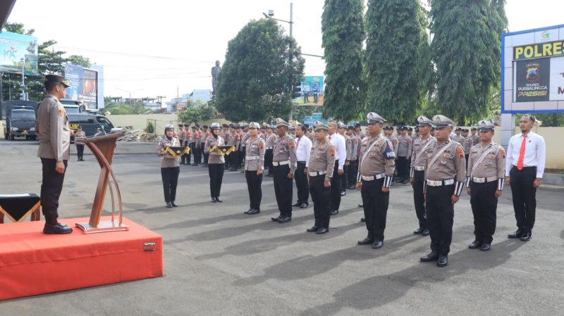 Kapolres Purbalingga AKBP Achmad Akbar dalam amanat apel menyampaikan apresiasi dan ucapan terima kasih atas pelaksanaan tugas dan dedikasi personel sehingga layak menerima penghargaan.