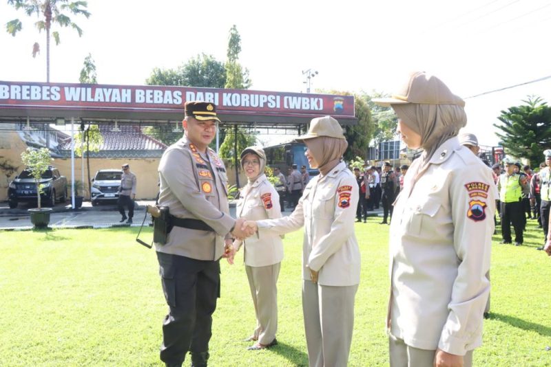 Upacara kenaikan pangkat sejumlah PNS Polri itu, terlaksana di halaman Mapolres Brebes, Senin (3/4/2023).