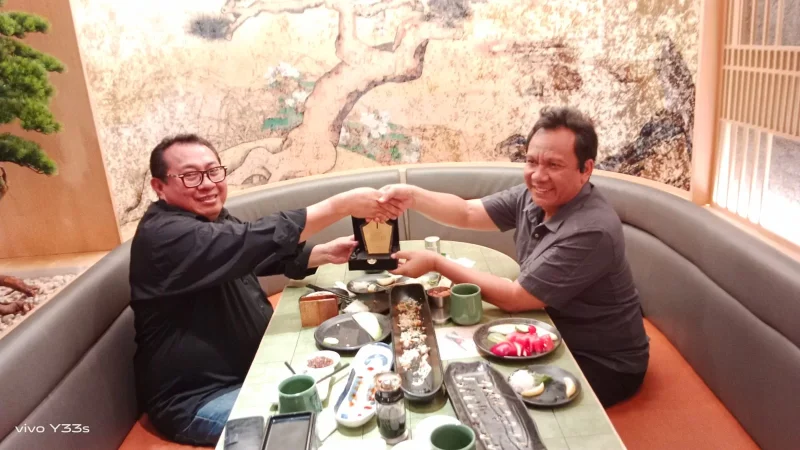 “Ini pertemuan santai saja mas, cuma makan minum saja dan menyerahkan cindra mata, serta menjalin silaturrahmi membangun sinergi dalam menjaga keamanan negara,melalui pemberitaan media di bawah naungan SMSI”, ucapnya.