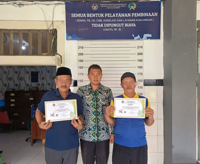 Brebes, Poskota.online – Momen kebebasan menjadi semakin bermakna bagi Warga Binaan Pemasyarakatan (WBP) Lapas Kelas IIB Brebes. Pasalnya 2 (dua) Warga Binaan tersebut selain jalani Pembebasan Bersyarat, menerima *sertifikat pembinaan Baca Tulis Al-Qur’an (BTQ)* sebagai bukti keberhasilan mengikuti program pembinaan keagamaan selama menjalani masa pidana.