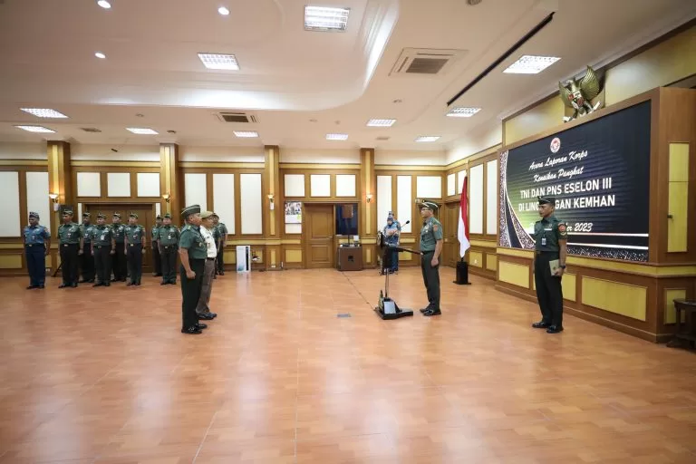 Jakarta, Poskota.online – Kepala Biro Kepegawaian Setjen Kemhan Brigjen TNI Kosasih memimpin acara Pelaporan Kenaikan Pangkat TNI dari Letkol ke Kolonel dan PNS Setingkat Eselon III di lingkungan Kemhan Periode 1 Oktober 2023, di Kemhan, Jakarta, Senin (2/10).
