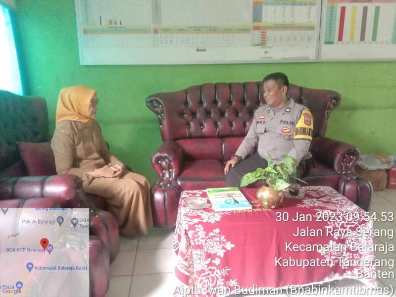 Kab.Tangerang,poskota.online – Polsek Balaraja. Bhabinkamtibmas Polsek Balaraja Polresta Tangerang, Aiptu Iwan Budiman  melaksanakan Saba Sekolah Sekaligus Bersilturahmi  kungjungi SDN Balaraja 1 Kelurahan Dan Kecamatan Balaraja ,