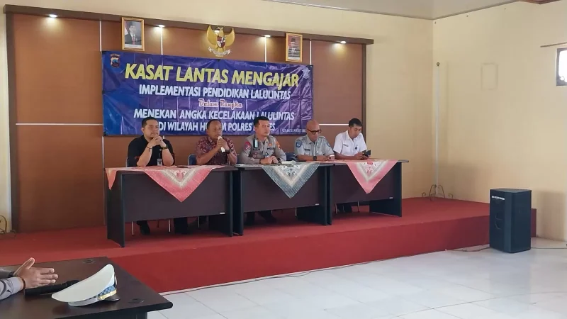 Dihadapan pelajar Kasatlantas menjelaskan 10 tata tertib berlalulintas juga edukasi tilang Elektronik (ETLE) dengan tujuan menekan angka kecelakan lalu lintas bagi pelajar. Rabu (30/08).