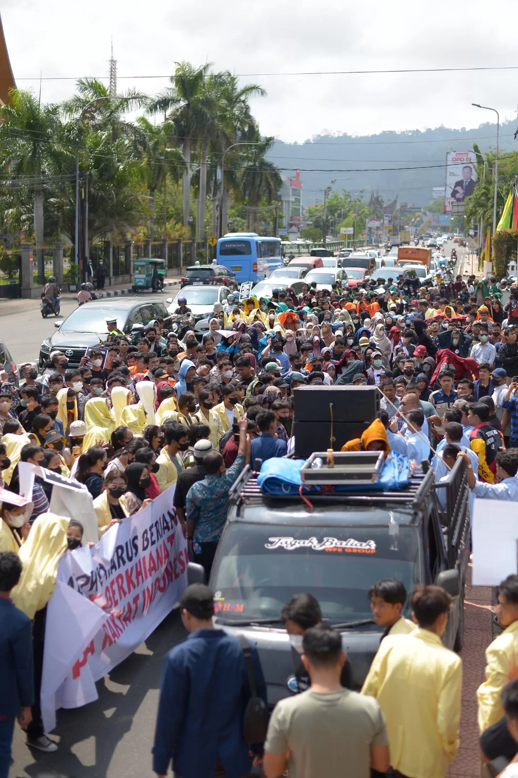 Padang, poskota.online- Aliansi Mahasiswa Sumatera Barat Kawal Amanah Rakyat (AMSB-Kawal Amanah Rakyat) yang merupakan gabungan dari perwakilan mahasiswa dari kampus se-Sumatera Barat menggelar aksi massa untuk mempertegas janji Prabowo Subianto selaku Calon Presiden (Capres) kepada Rakyat Indonesia. (31/1/24).