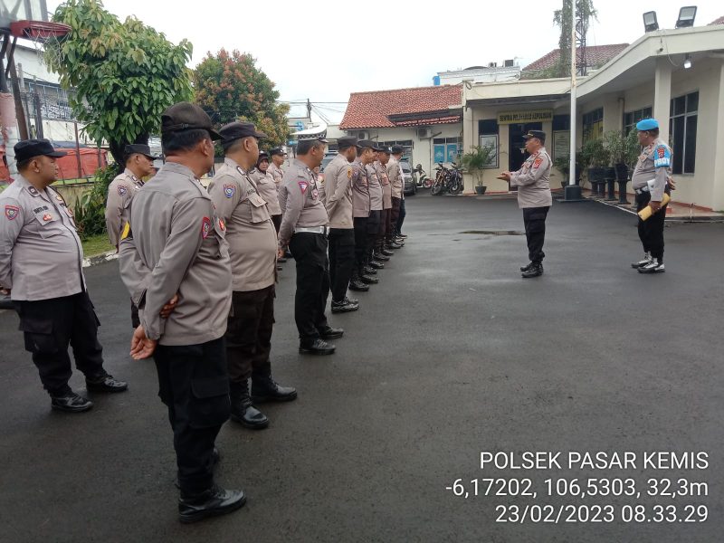 Seperti pada pagi ini Kamis (23/02/2023) Kanit Binmas Polsek Polsek Pasar Kemis Polresta Tangerang Polda Banten Iptu Wigiyanto memimpin pelaksanaan giat apel pagi di halaman Mapolsek Pasar Kemis adalah merupakan sarana disiplin mengenai waktu serta sarana tanggung jawab pimpinan terhadap anggotanya.