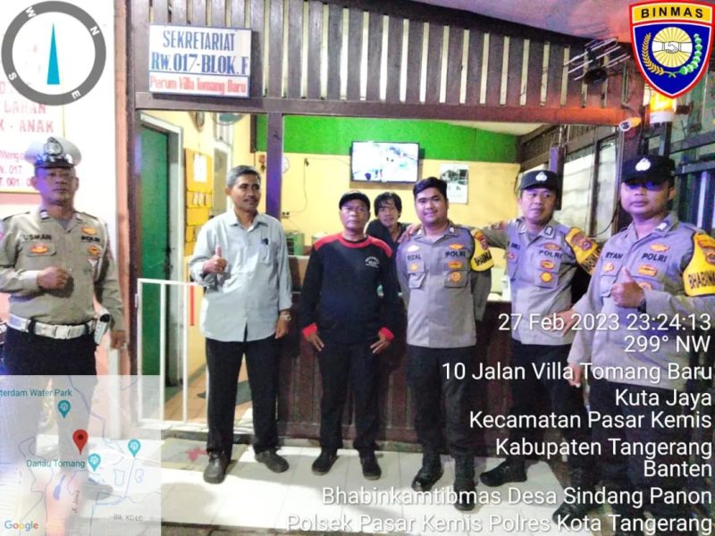 Kab. Tangerang,poskota.online – Patroli Polsek Pasar Kemis Polresta Tangerang Polda Banten dipimpin Perwira pengawas (PAWAS) Iptu Rohyadi melaksanakan patroli sambangi Pos Siskamling di Pos Kamling RW 17 Villa Tomang Baru Ds. Gelam Jaya Kec. Pasar kemis. Selasa (28/02/2023. Jam 00.30 Wib.
