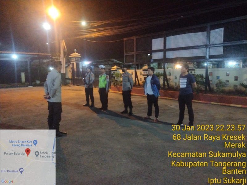 Pawas Kapolsubsektor Polsek Balaraja Polresta Tangerang Polda Banten. Iptu Sukardji pimpin Kegiatan apel Cipkon dilanjutkan Patroli malam piket fungsi yang diawali kesiapan kekuatan personil dan do’a serta dilanjutkan arahan agar seluruh anggota selalu meningkatkan kedisplinan dan tanggung jawab dalam melaksanakan piket juga berdoa kepada Tuhan Yang Maha Esa agar situasi kamtibmas kondusif.