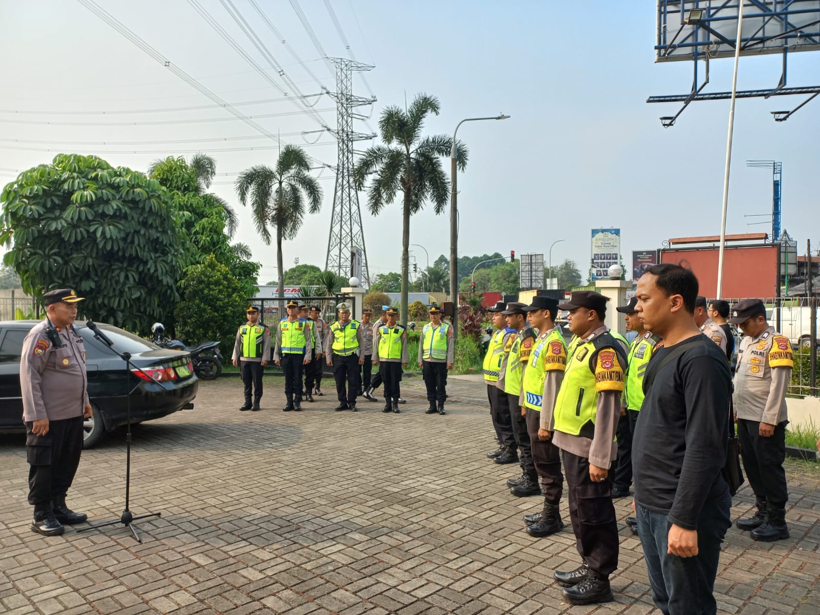 Arahan Kompol M. Supur (Kasat Binmas), “Hari ini kita melaksanakan pengamanan lintasan kepulangan Wakil Presiden R.I, K.H. Ma’ruf Amin ke Tanara.”