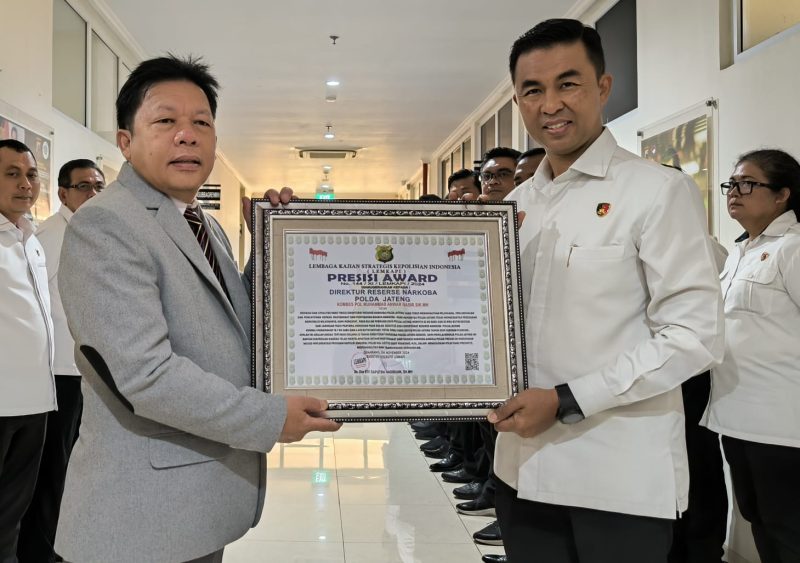 Semarang, POSKOTA.ONLINE – Direktorat Reserse Narkoba Polda Jateng menerima penghargaan bergengsi, Presisi Award, yang diberikan langsung oleh Direktur Eksekutif Lembaga Kajian Strategis Kepolisian Indonesia (Lemkapi), Dr. Drs. Edi Saputra Hasibuan, S.H., M.H., kepada Kombes Pol Muhammad Anwar Nasir, S.I.K., M.H., selaku Direktur Reserse Narkoba Polda Jateng, pada Senin (04/11/2024) di Mapolda Jateng.