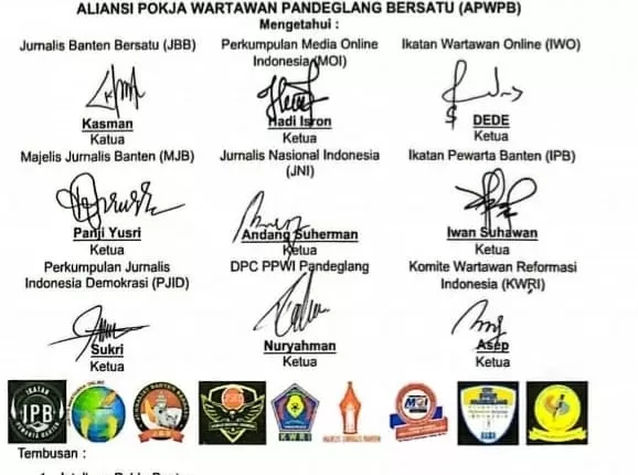 “Surat audiensi ini sudah berdasarkan kesepakatan bersama para ketua organisasi pers yang ada di Pandeglang. Tentunya organisasi yang tergabung dalam APWPB,” Kata Kasman