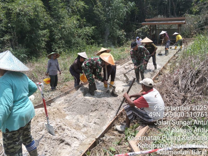 Upaya membangun kedekatan dengan rakyat saat ini juga dilakukan oleh Satgas Pamtas RI-Malaysia Batalyon Kavaleri 3/Andhaka Cakti dengan membantu masyarakat perbatasan melakukan pengecoran jalan di Desa Sei Mawang, Puring Kencana, Kapuas Hulu, Rabu (3/9/2025).