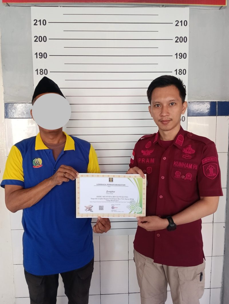 POSKOTA.ONLINE – Warga Binaan Pemasyarakatan (WBP) Lembaga Pemasyarakatan (Lapas) Kelas IIB Brebes yang menjalani Pembebasan Bersyarat kembali kerumah dengan membawah sertifikat Tamat Iqro dan Al-Quran, Kamis (20/06).