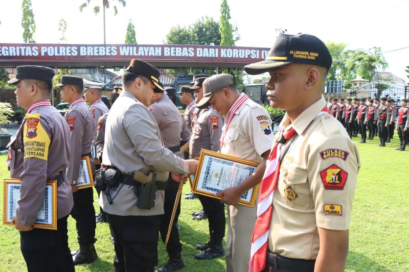 Pemberian penghargaan tersebut dilaksanakan dalam sebuah Apel yang digelar dihalaman Mapolres Brebes, Rabu (16/5/2023).