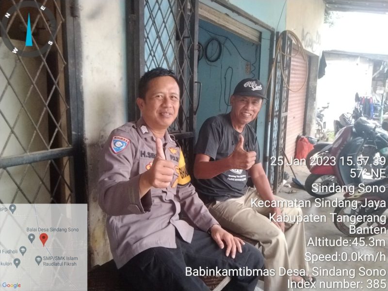 Kab. Tangerang,poskota.online – Bhabinkamtibmas Desa Sindang Sono Polsek Pasar Kemis Polresta Tangerang Polda Banten Bripka H. Sibli Supriyatna melaksanakan Sambang dan Komunikasi dengan Sdr. Heri warga Kampung Rimpak kulon Desa Sindang sono Kecamatan Sindang Jaya, Rabu (25/01/2023)