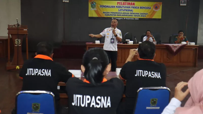 BANJARNEGARA – Dalam upaya meningkatkan kemampuan relawan dan masyarakat terutama di wilayah rawan bencana, Badan Penanggulangan Bencana Daerah (BPBD) Kabupaten Banjarnegara menyelenggarakan pelatihan Pengkajian Kebutuhan Pasca Bencana (Jitupasna) di Sasana Abdi Praja pada, Rabu (20/9/2023).