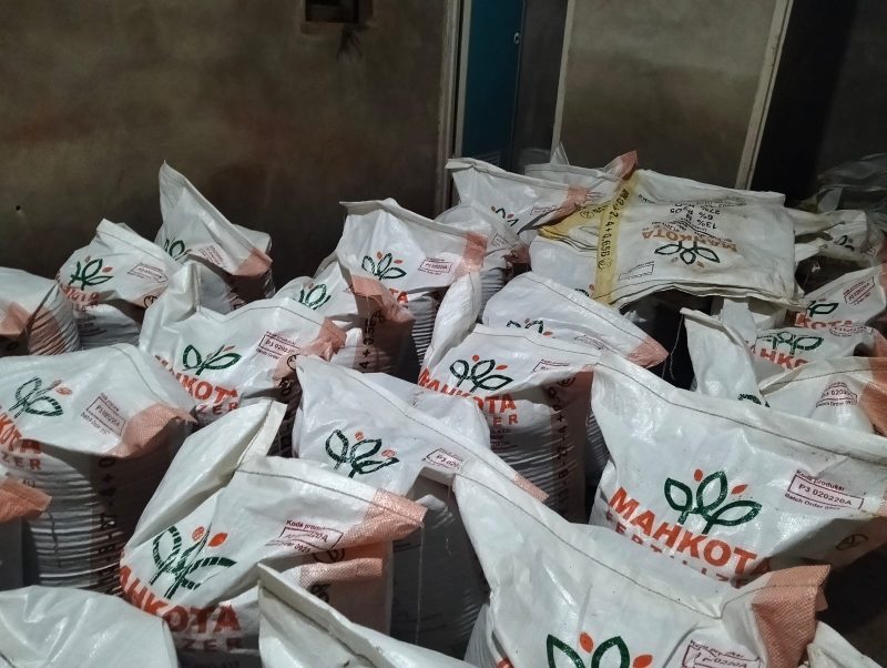 Penggerebekan dilakukan pada Jumat dini hari pukul 01.35 WIB. Dari hasil penggeledahan, tim menemukan sebanyak 100 karung pupuk merek Mahkota yang diduga kuat tidak memiliki izin edar resmi alias ilegal.