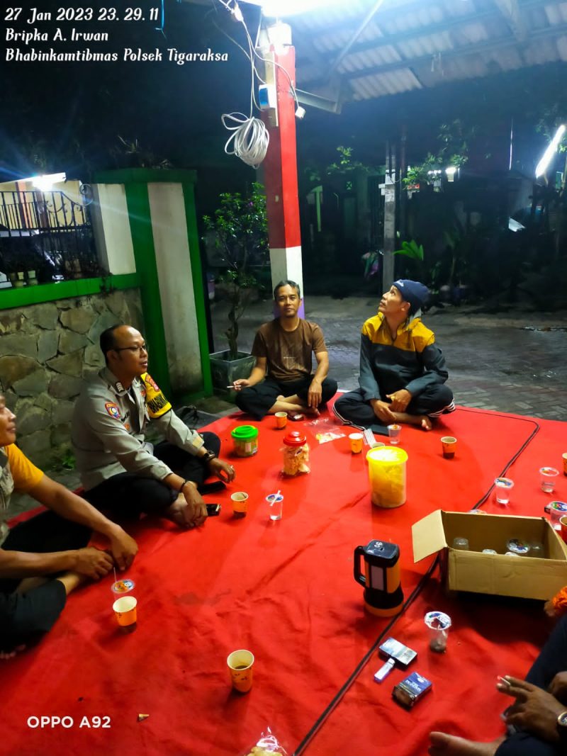 Tigaraksa,Tangerang,poskota.online – Untuk Meningkatkan keamanan bagi Masyarakat Bhabinkambtimas Polsek Tigaraksa Polresta Tangerang Bripka A Irwan rutin kunjungi Pos ronda di Perumahan Mustika Tigaraksa Blok B RW 10 Desa Pasirnangka Kecamatan Tigaraksa Kabupaten Tangerang, Jumat (27/1/2023)