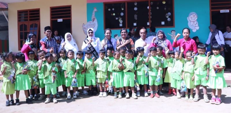Dalam kesempatan tersebut, Bunda PAUD Kabupaten Simalungun menyerahkan bantuan dari DWP Prov. Sumut dan Dinas Sosial Simalungun kepada anak-anak stunting. Setelah itu, rombongan melanjutkan perjalanan ke TK Kencana Mekar Nagori Bah Butong Kecamatan Sidamanik.