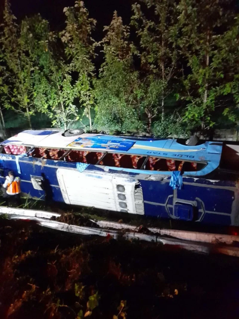 Berdasarkan informasi yang didapat dari Kepala Badan Penanggulangan Bencana Daerah (BPBD) Kota Tangerang Selatan, Sutang, Bus tersebut membawa rombongan peziarah warga Jalan H. Toran, Rengas Ciputat Timur, dan berjumlah 61 penumpang, dan dikabarkan satu orang meninggal dunia.