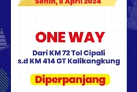 Poskota.Online – Korlantas Polri memperpanjang penerapan sistem satu arah (one way) di Tol Cipali mulai dari KM 72 hingga KM 414 Tol Kalikangkung. Perpanjangan…