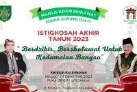 CIREBON,Poskota.Online-Majelis Dzikir Sholawat Sunan Gunung Jati kembali menggelar doa Bersama dengan mengambil tema Istigosah Akhir Tahun 2023 untuk Kedamaian Bangsa, Minggu (24 Desember 2023)…