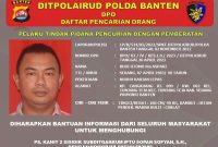 Serang,Poskota.Online-Ditpolairud Polda Banten merilis satu nama dalam Daftar Pencarian Orang (DPO). Nama dalam DPO tersebut merupakan pelaku tindak pidana pencurian dengan pemberatan. Berdasarkan nomor…