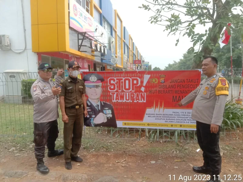Cegah Aksi Tawuran, Jajaran Polsek Pasar Kemis Pasang Spanduk Himbauan Bahaya Tawuran
