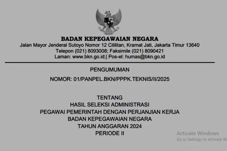 Jakarta, poskota.online – Berdasarkan informasi dari laman resmi Badan Kepegawaian Negara ( BKN ) dan humas @bkn .go.id. yang telah merillis Pengumuman Daftar Nama Honorer Lulus Gadil Seleksi Administrasi PPPK Tahap II BKN Tahun Anggaran 2024