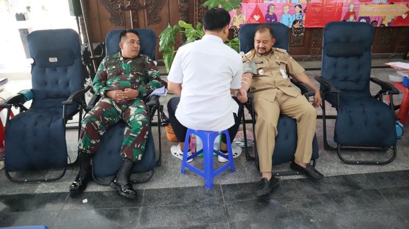 Pemalang, poskota.online – Dalam rangka memperingati Hari Donor Darah Sedunia, Dandim 0711/Pemalang Letkol Inf Muhammad Arif, S. Hub. Int., bersama anggota Kodim 0711/Pemalang mengikuti kegiatan bakti sosial donor darah yang digelar di Pendopo Kab. Pemalang, pada Selasa (24/6/25).
