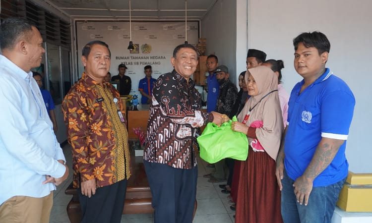 Bantuan berupa paket sembako ini diserahkan langsung oleh Kunrat Kasmiri Kepala Kantor Wilayah Direktorat Jenderal Pemasyarakatan Jawa Tengah yang sedang melaksanakan kunjungan kerja di Rutan Pemalang
