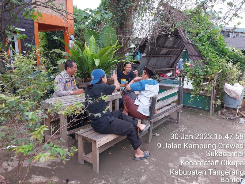Kab.Tangerang,poskota.online – Aiptu Mukhsodin bhabinkamtibmas polsek cikupa polresta tangerang Polda Banten Yang Bertugas Kesehariannya Selaku Pembina di desa sukadamai bertempat di kampung cirewed RT,01/04, Desa Sukadamai kecamatan cikupa Kabupaten Tangerang, Melaksanakan Tugas Rutin Monitoring Wilayah Adalah Wujud Kepedulian Bhabinkamtibmas Mendukung Program Kerja Kapolda Banten (Commander Wish) Yuu Ngopi Wae Dalam Kegiatan Dialogis Dan Monitoring Wilayah binaanya, Duduk Bareng Bersama warga masyarakat Bersilaturahmi Sambil Yuuk Ngopi Wae. bertempat Dikampung Cirewed RT,0104 desa sukadamai kecamatan cikupa pada senin (30/01/2023) sekira jam 16.46 Wib.