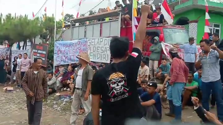 Ratusan warga masyarakat tersebut melakukan orasi secara damai di halaman kantor desa petuguran kecamatan punggelan,kabupaten Banjarnegara.