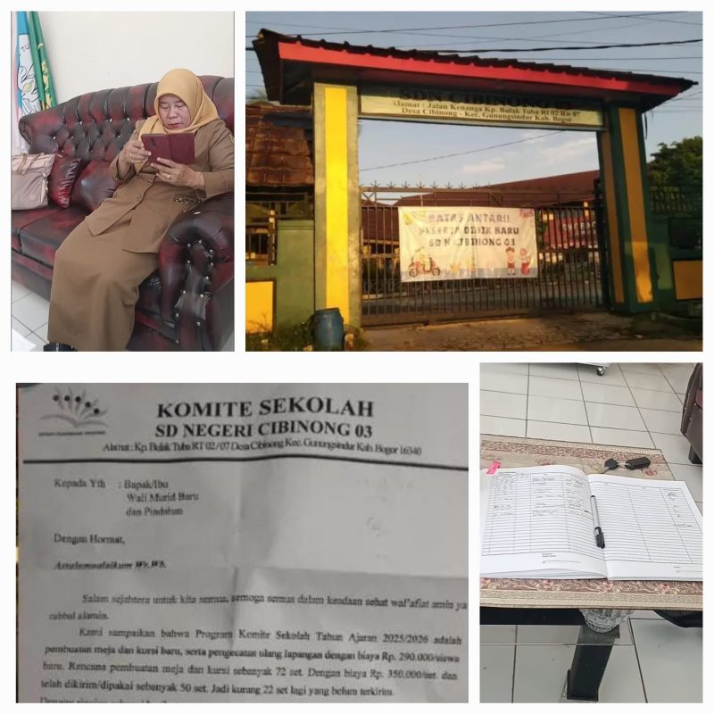 Dalam surat bertanggal 21 Oktober 2025, pihak komite SDN Cibinong 03 meminta setiap orang tua siswa baru dan pindahan berpartisipasi membiayai pembuatan 72 set meja dan kursi baru senilai Rp350 ribu per set. Dari total kebutuhan tersebut, sebanyak 50 set disebut telah dibayar senilai Rp14,2 juta. Orang tua yang belum membayar diminta segera melunasi sisa pengadaan 20 set meja kursi serta biaya pengecatan ulang dengan total mencapai Rp15,98 juta.