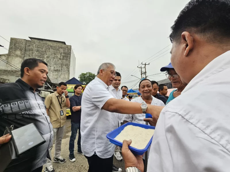 Poskota.Online – Direktur Utama Perum BULOG, Bayu Krisnamurthi memantau kondisi stok beras di Pasar Johar, Karawang.