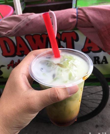 Awak media melihat ada penjual Es Dawet Ayu khas Banjarnegara yang berjualan di depan Taman Patih Sampun Pemalang yang merupakan salah satu Taman Kota ikonnya Kabupaten Pemalang ,