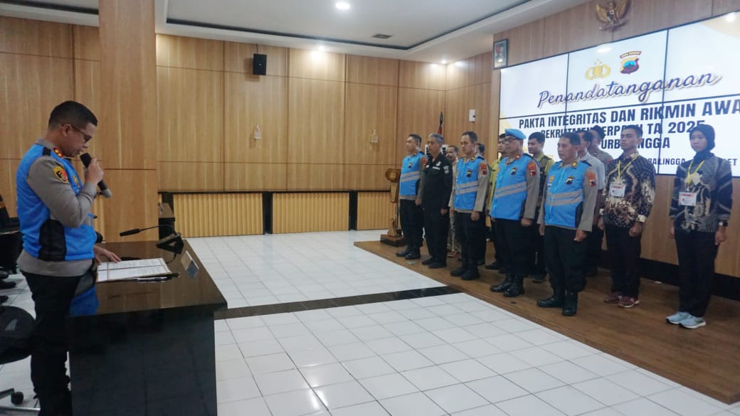 PurbaIingga, Poskota.online – Polres Purbalingga menggelar pengambilan sumpah dan penandatanganan pakta integritas penerimaan Polri tahun anggaran (TA) 2025. Kegiatan digelar di Aula Wicaksana Laghawa Mapolres Purbalingga, Jumat (7/3/2025).