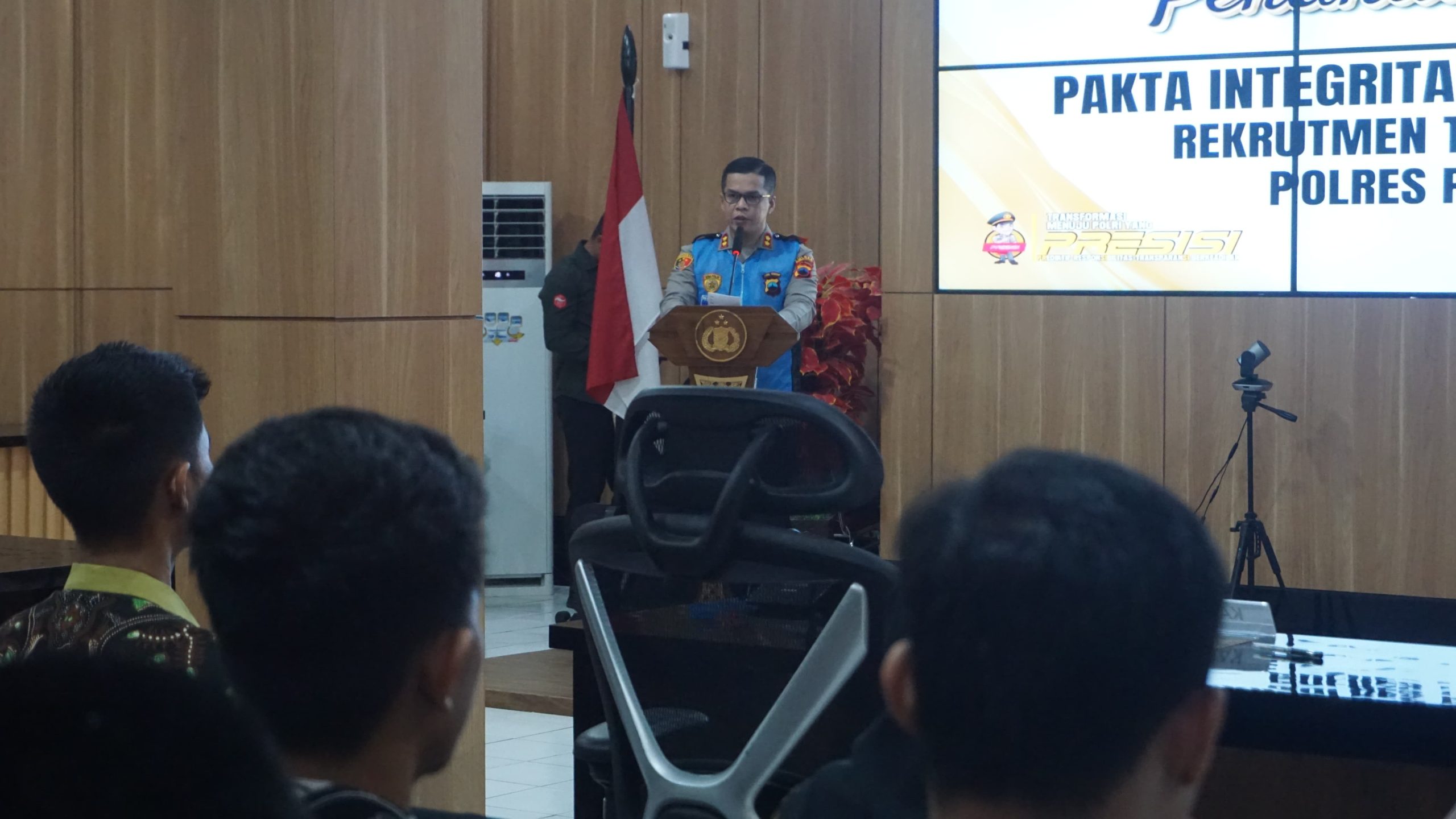 Dalam kegiatan dilaksanakan pembacaan pakta integritas oleh panitia seleksi yaitu Iptu Teguh Susilo selaku sekretaris pelaksana. Selanjutnya, oleh pengawas eksternal dari LSM Peduli Rakyat, perwakilan orang tua dan calon siswa.