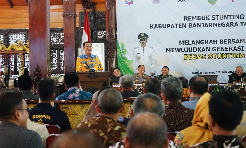 Hal tersebut disampaikan Masrofi saat acara Rembug Stunting Tingkat Kabupaten Banjarnegara Tahun 2024 di Pendapa Dipayudha Adigraha, Jum’at (12/7/2024).