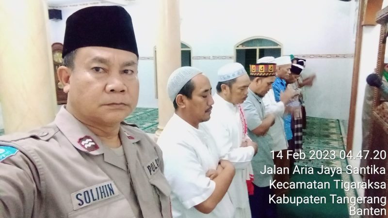 Kab.Tangerang,poskota.online – Untuk menjalin silaturahmi dengan tokoh agama Bhabikamtimas Polsek Tigaraksa Polresta Tangerang Aiptu Solihin melaksanaka Sholat Subuh berjamaah bersama warga masyarakat di Masjid Jami Darusalam Kp Pabrik Hegarsari Rt 05/03 Kelurahan Tigaraksa Kecamatan Tigaraksa Kabupaten Tangerang, Selasa (14/2/2023).