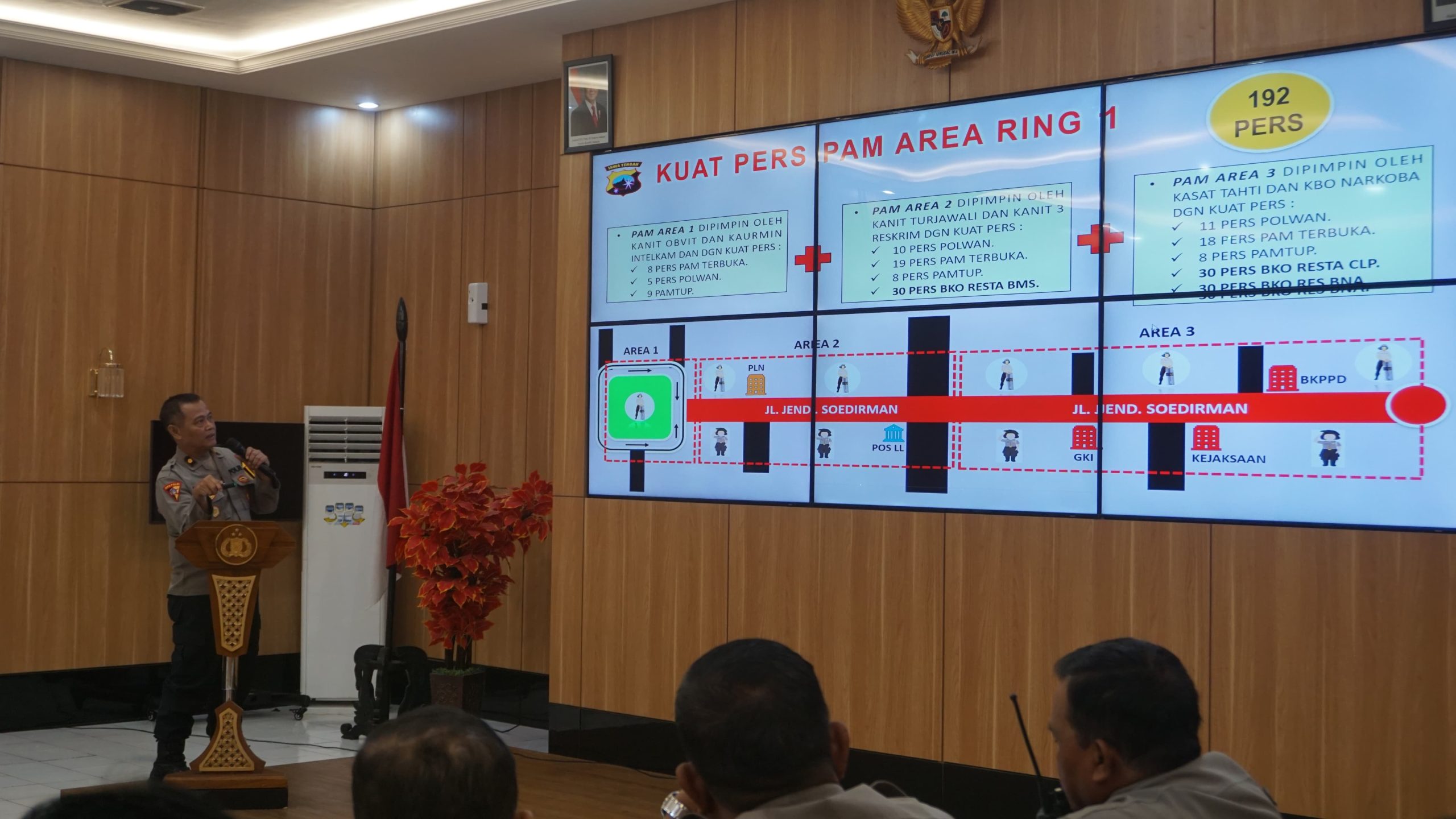 “Jadi nanti akan dijelaskan oleh Kabag Ops plotingannya seperti apa, siapa berbuat apa dan bertanggung jawab kepada siapa dalam pengamanan. Skenario pemberangkatan, jalur yang dilalui, lokasi parkir dan setelah selesai bagaimana,” ucap Kapolres.