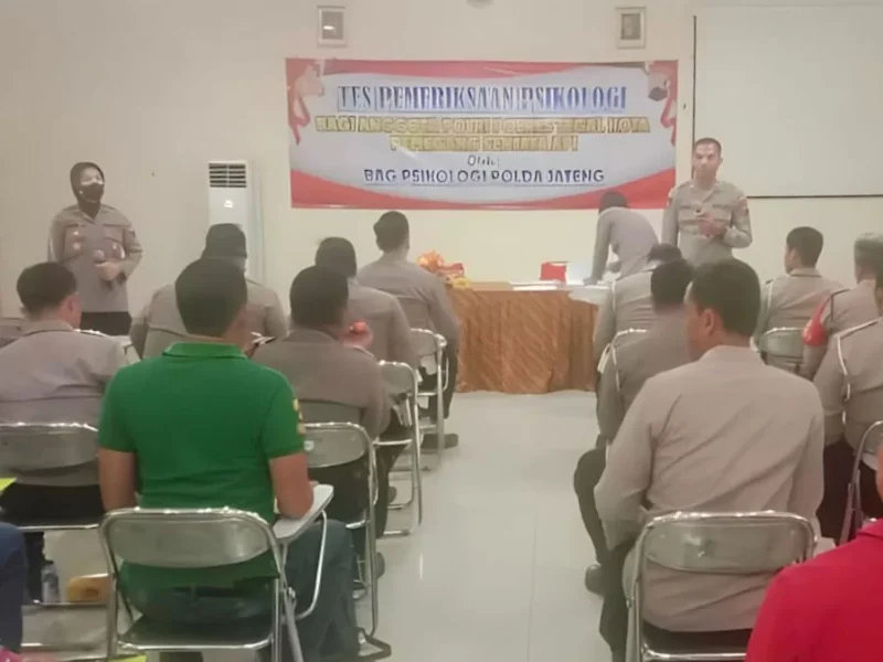 Kapolres Tegal Kota melalui Kepala Bagian Sumber Daya Manusia (Kabag SDM) Kompol Pujiningsih, S.H, M.H menyebutkan, ada sebanyak 70 personel Polres Tegal Kota yang mengikuti tes psikologi hari ini. Tujuannya yaitu sebagai persyaratan kelayakan untuk mendapatkan ijin pengajuan inventaris senjata api dinas.