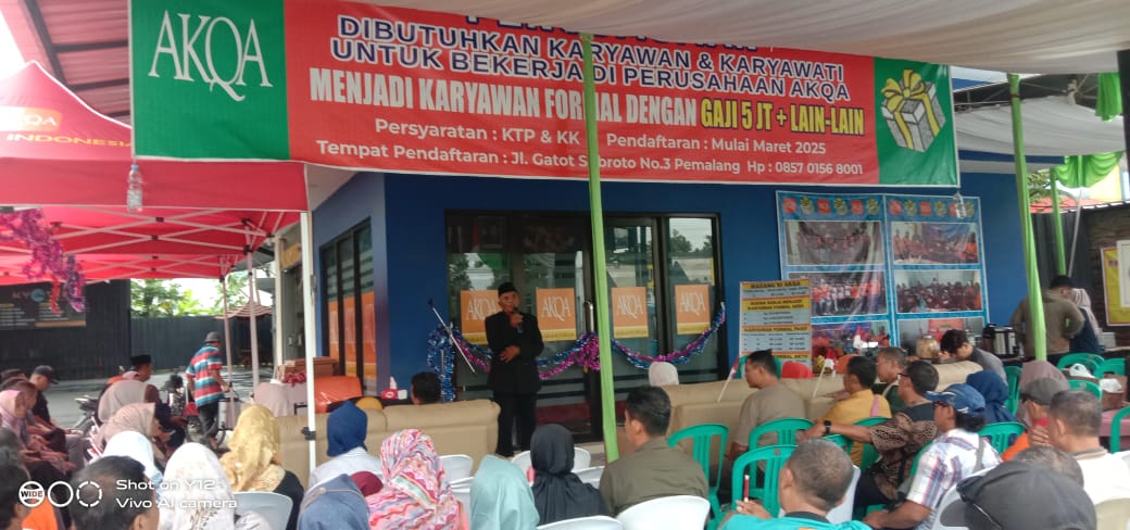 Dalam kata sambutannya , dirinya mengatakan ” saya ucapkan selamat datang para leader B1,B2 , B3 dan B4 dan karyawan formal aktif serta calon – calon karyawan AKQA dari Pemalang , Tegal , Pekalongan , Batang ,