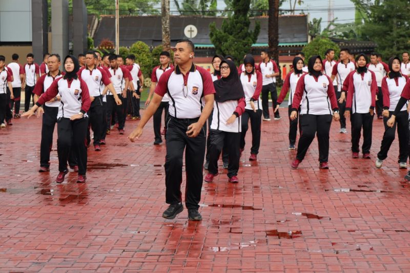 Guna Menjaga Tubuh Tetap Prima, Polda Banten Gelar Olahraga Bersama Personel