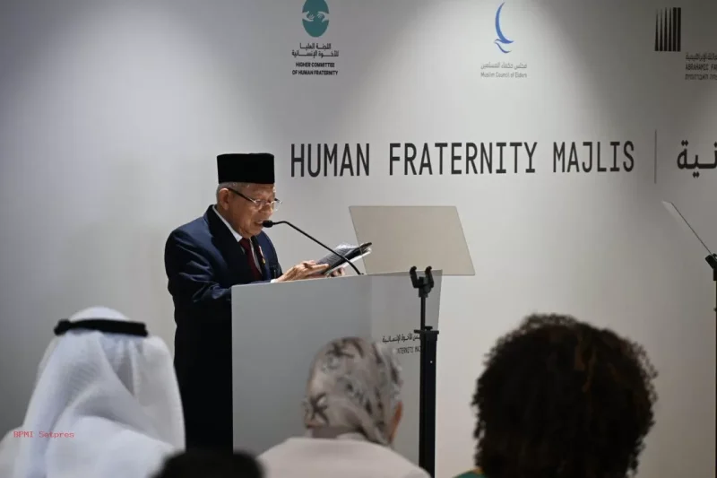 “Saya harap Dokumen tersebut terus menjadi pengingat bagi kita semua tentang pentingnya nilai-nilai persaudaraan dan kemanusiaan global yang melampaui pembeda apapun, termasuk agama dan kepercayaan,” pungkas Wapres.