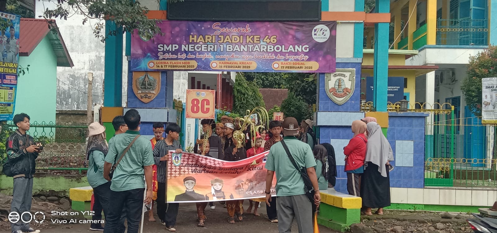 Pada event khusus reguler tahunan kali ini seperti biasanya ada karnaval Dirgahayu ( Hari Jadi ) ke 46 tahun Ika Fariatul Apriliayani .S.Pd.Kepala Sekolah ( KS ) SMPN 1 Bantarbolang terlihat berdiri dengan memakai kostum adat Jawa menaiki mobil didampingi dan sekaligus mengawal semua jajaran tenaga pendidik dan juga puluhan siswa,- siswi didik yang mengenakan berbagai macam kostum profesi