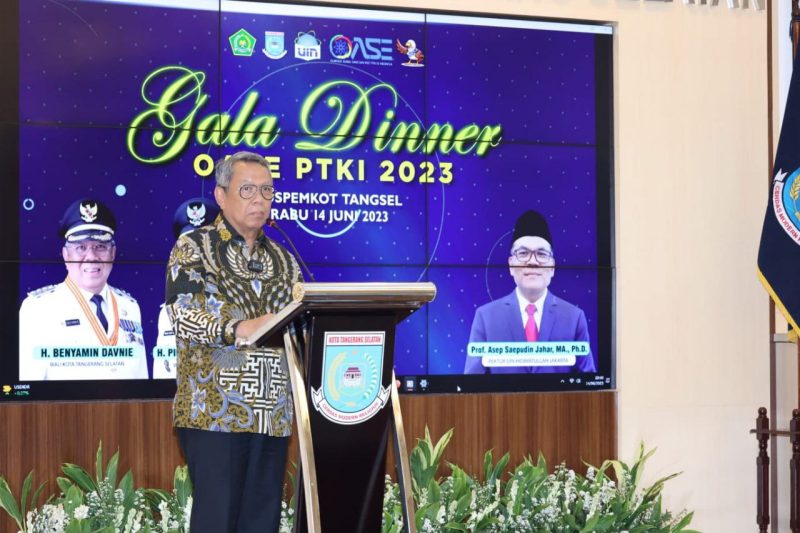CIPUTAT,Poskota.Online-Pemerintah Kota Tangerang Selatan menggelar Gala Dinner yang dihadiri para Rektor, Wakil Rektor dari seluruh Perguruan Tinggi Keagamaan Islam dan para peserta Olimpiade Agama, Sains dan Riset (OASE), yang digelar di Aula Blandongan Puspemkot Tangsel pada Rabu malam (14/06).