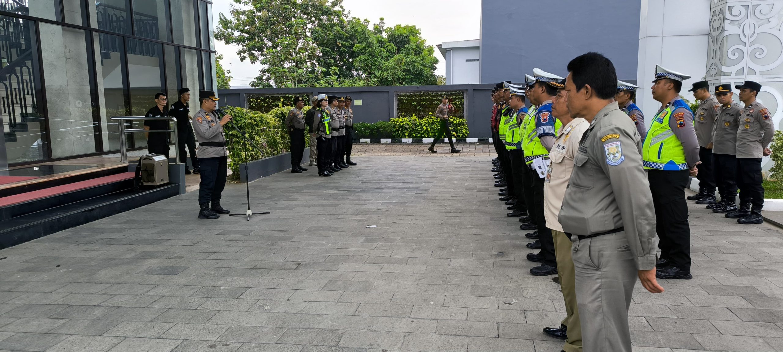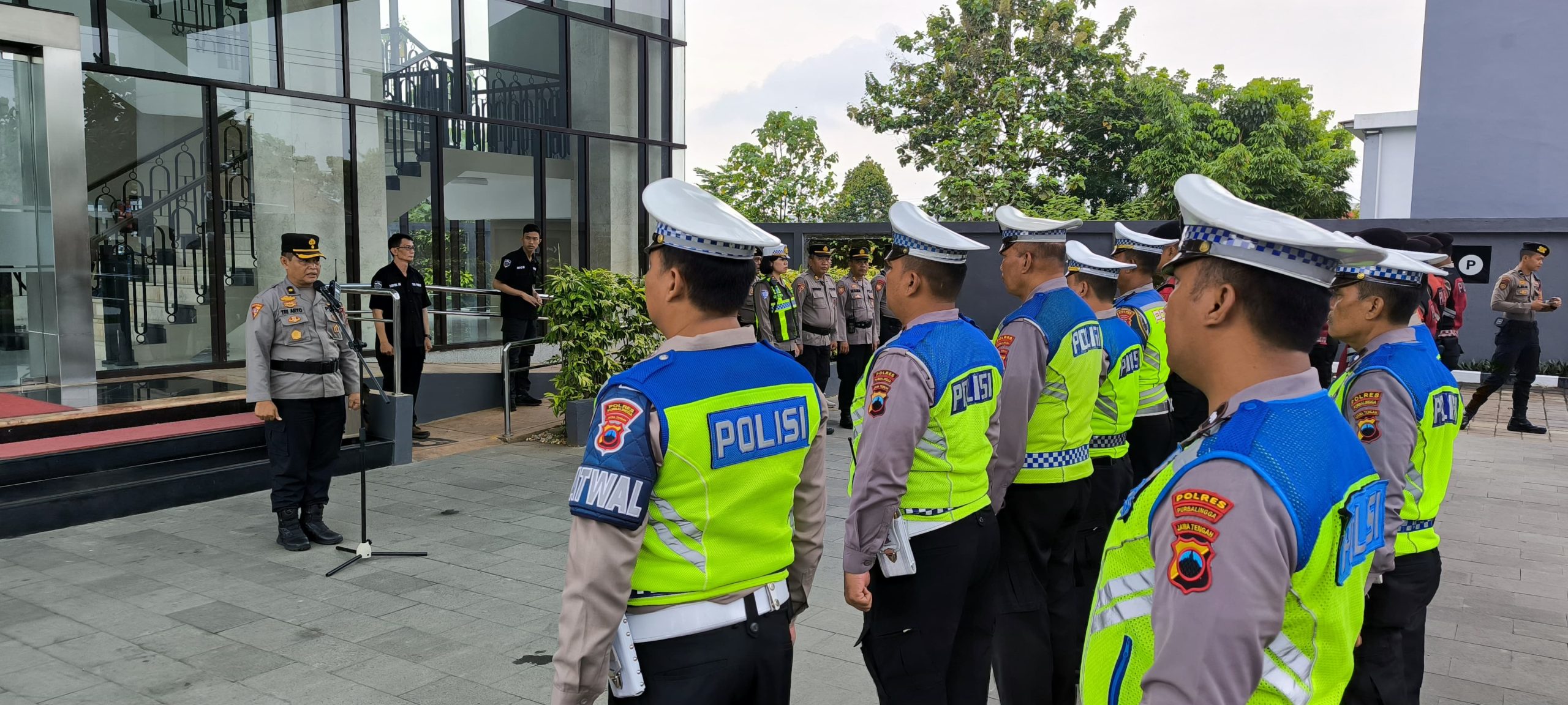 Para personel yang terlibat dalam pengamanan melaksanakan apel kesiapan di lokasi acara pukul 08.45 WIB. Apel dipimpin oleh Kabag Operasi (Kabagops) Polres Purbalingga Kompol Tri Arjo Irianto.