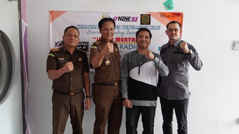 Tanjungpinang,Poskota.online-Kepala Seksi Penerangan Hukum Kejaksaan Tinggi Kepulauan Riau DENNY ANTENG PRAKOSO, SH., MH., menjadi Announcer (penyiar) berkolaborasi dengan Penyiar Radio Onine 93 FM Tanjungpinang ANDRA dalam acara Dialog Interaktif Jaksa Menyapa di Radio Onine 93 FM Tanjungpinang dengan topik “Pencegahan Terjadinya Tindak Pidana Perdagangan Orang (TPPO)”, dan yang menjadi narasumber Koordinator Bidang Tindak Pidana Umum Kejaksaan Tinggi Kepulauan Riau NURUL ANWAR, SH., MH., didampingi Kepala Seksi Tindak Pidana Terorisme dan Lintas Negara pada Bidang Tindak Pidana Umum Kejaksaan Tinggi Kepulauan Riau ABDUL MALIK, SH., Kamis (16/05/2024).
