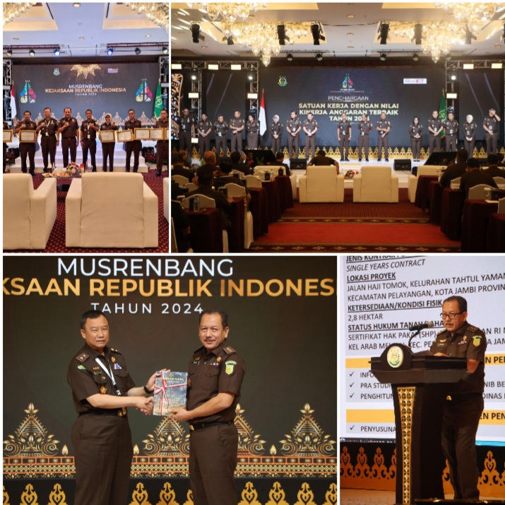 Jakarta,Poskota.Online-Jumat 26 April 2024, Jaksa Agung Muda Pembinaan (JAM-Pembinaan), Dr. Bambang Sugeng Rukmono memberikan penghargaan kepada satuan kerja (satker) yang memperoleh Nilai Kerja Anggaran (NKA) Terbaik Tahun 2023. Penghargaan tersebut diberikan pada penutupan Musyawarah Perencanaan Pembangunan (Musrenbang) Kejaksaan RI Tahun 2024 di Ayodya Resort, Nusa Dua, Bali.