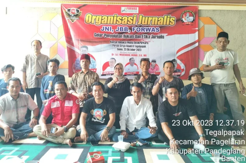 PANDEGLANG,Poskota.Online-Persatuan jurnalis yang tergabung dalam Jurnali Nasional Indonesia (JNI), Jurnalis Banten Bersatu (JBB), Forum Wartawan Selatan (FORWAS) Pandeglang menggelar acara penyuluhan hukum dan etika jurnalis, yang bertempat di perumahan Griya abadi 2 Desa Tegalpapak Kecamatan Pagelaran Kabupaten Pandeglang, Senin (23/10/2023).